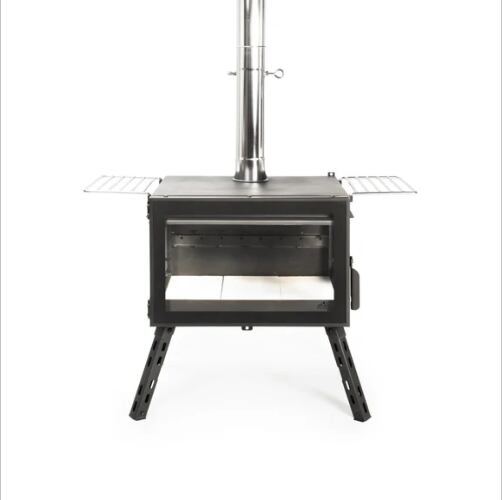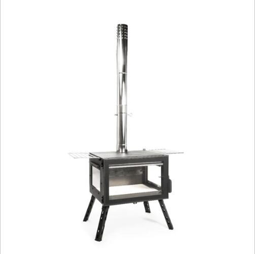 アウトドア薪ストーブ「オーラ」は、炎をじっくり楽しめる3面ガラス仕様の高機能ストーブです。