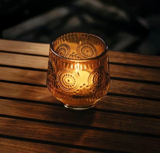 アンバーの深い色合いが、夜のキャンプに“古き良きあかり”の空気を添え、